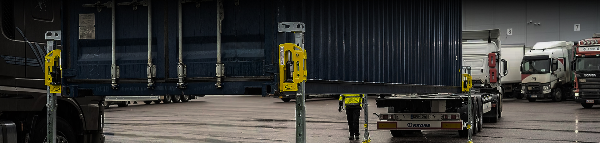 De CF-, CFP- en CFL-sets zijn ideaal voor containers op trailers met luchtvering. Met deze sets kun je containers direct op poten plaatsen en veilig laten staan. Voor containers aan een laad dok gebruik je de CFP-set, zoals te zien in de derde video op onze pagina.